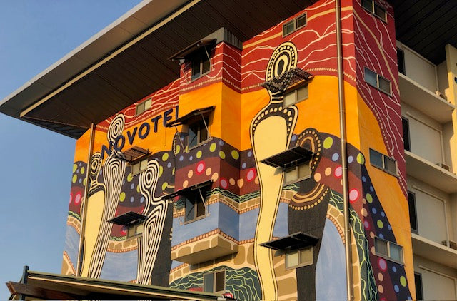 “Journey of Travellers” is celebrating First Nations People’s diverse cultures and stories. This painting will convey our journeys in life, especially when we come together for special moments and experiences which create our memories.  Travelling creates these memories of curiosity, wonder, celebration and appreciation.